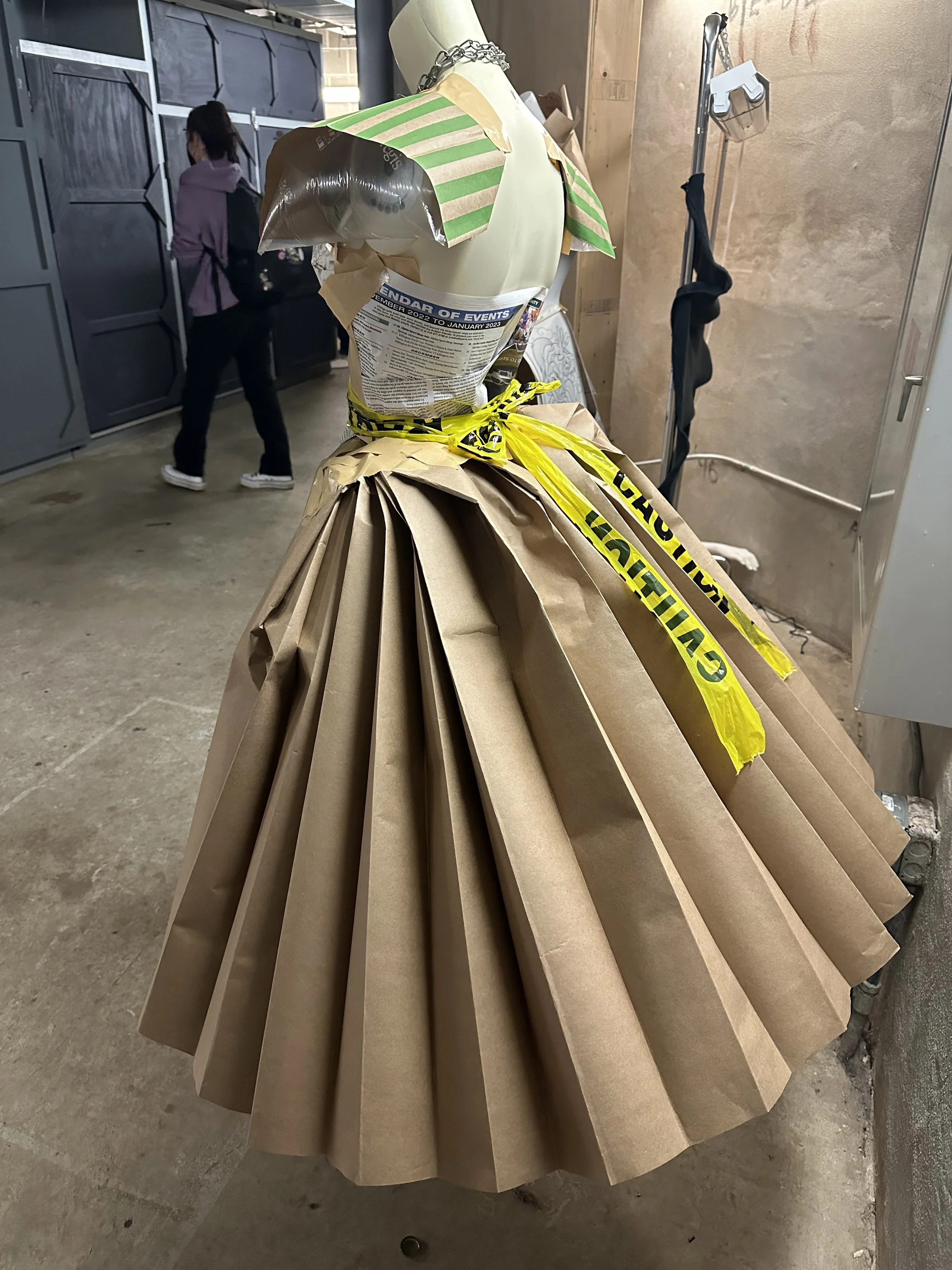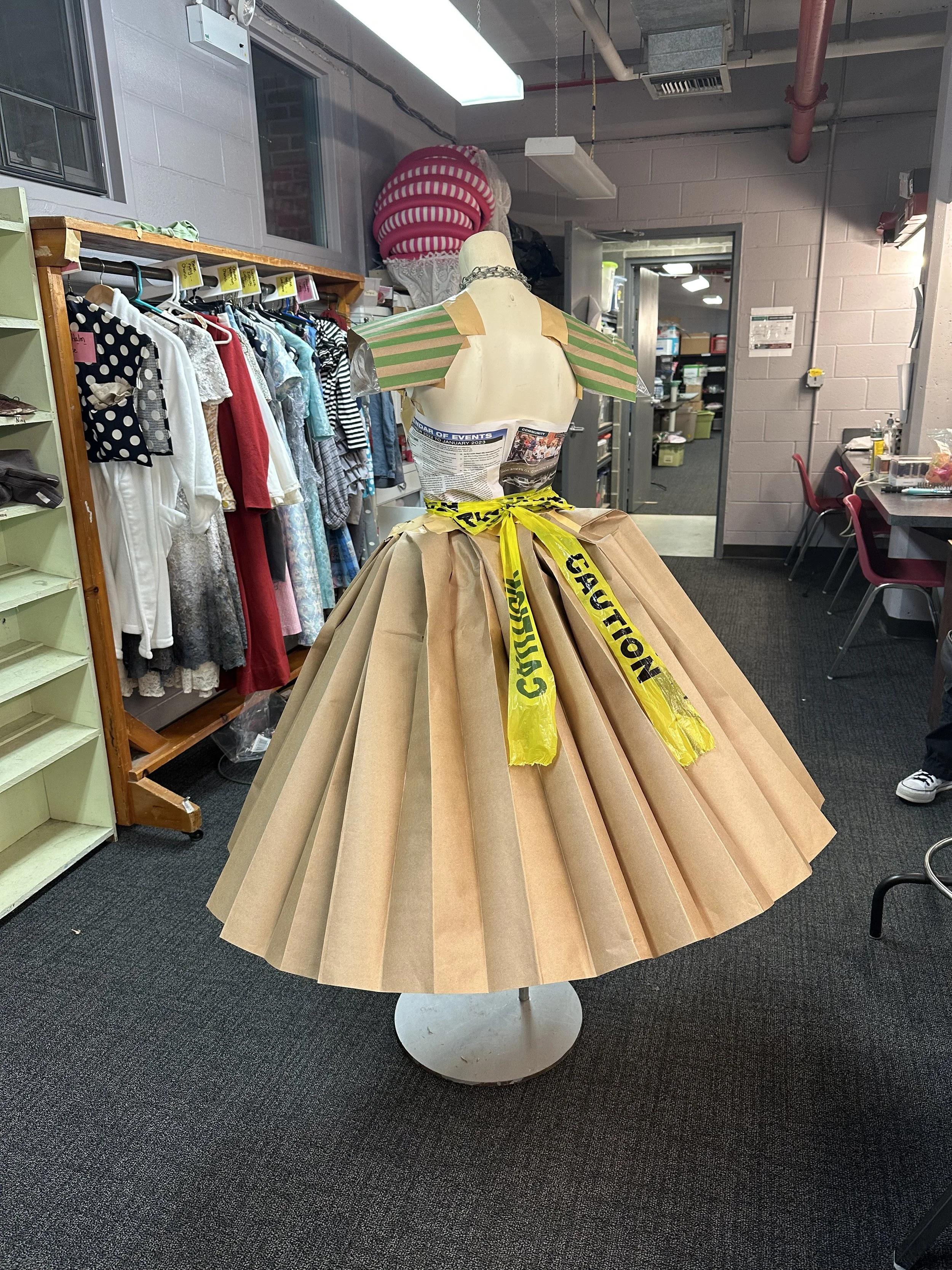 Using all recycled or recyclable materials, Libby Hinshaw and I created twist on the idea of a paper bag dress and The Paper Bag Princess by Robert Munsch, this time updating it for a more glam, edgier, rock and roll look. This project was completed for a Costume Design class taught by Sam Garwood at Skidmore College.